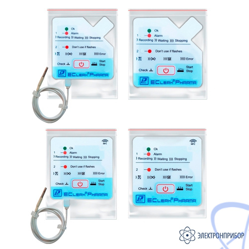 - EClerk-Pharma-NFC-e – терморегистратор автономный, NFC, выносной сенсор, -40…+120°C;