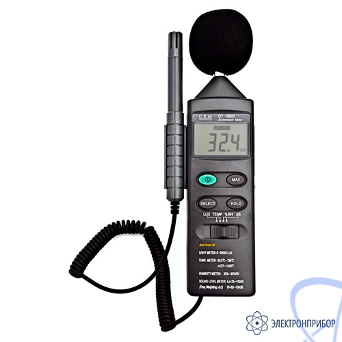 - Большой LCD дисплей с возможностью отображения единиц измерения: Lux, ºC,%RH и индикацией C & dB, A & dB;