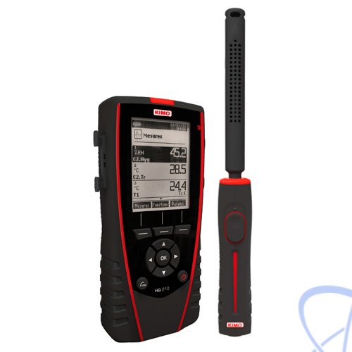 • HQ 210 O - базовый комплект + всенаправленный телескопический зонд SOM 900 для измерения скорости потока воздуха/ влажности/ температуры (диапазоны измерения: от 0,00 до 5 м/с, от 5 до 95% отн. вл. и от 0 до + 50°C).
