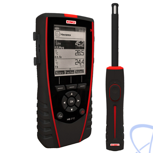 • HQ 210 O - базовый комплект + всенаправленный телескопический зонд SOM 900 для измерения скорости потока воздуха/ влажности/ температуры (диапазоны измерения: от 0,00 до 5 м/с, от 5 до 95% отн. вл. и от 0 до + 50°C).