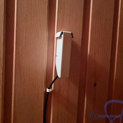 Кронштейн HTE предназначен для установки выносного сенсора датчика температуры и влажности EClerk-WS-HT-I-E на вертикальную поверхность. Кронштейн состоит из двух металлических деталей: собственно кронштейна и защитного экрана. Защитный экран служит для предохранения сенсора от струй воды. Конструкция экрана обеспечивает свободную циркуляцию воздуха вблизи сенсора снизу вверх. Области применения кронштейна: бани, сауны и другие обьекты, в которых необходимо устанавливать датчик EClerk-WS-HT-I-E. При установке датчика температуры и влажности EClerk-WS-HT-I-E в бане (сауне) сенсор необходимо монтировать на уровне 0,5 м выше сидения для находящихся там людей, а сам датчик нужно опустить как можно ниже, в зону с минимальной температурой.