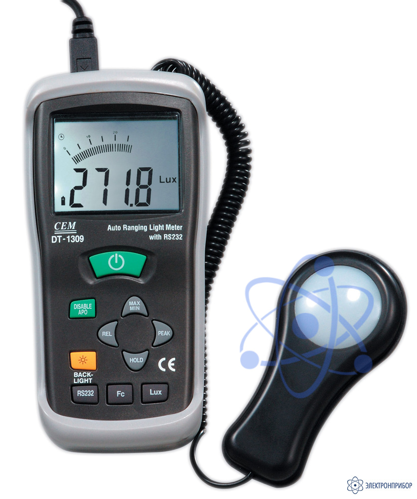 Люксметр DT-1309 удобен в использовании, малогабаритный с защитным чехлом, большим цифровым дисплеем с аналоговой шкалой проводит измерения в люксах либо фут-канделах. Компактный фотодетектор.