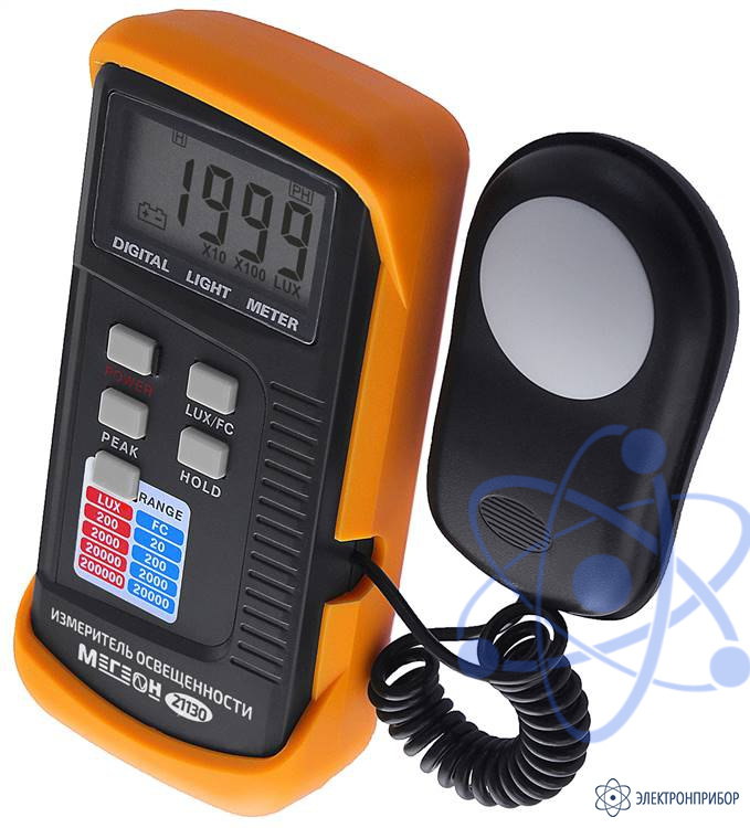 МЕГЕОН 21130 - цифровой измеритель освещенности представляет собой прецизионный измерительный прибор с большим диапазоном измерений и высокой точностью. Корпус люксметра изготовлен из прочного пластика, но для предотвращения случайного повреждения в комплекте имеется защитный холдер. Кремниевый фотодатчик со встроенным светофильтром соответствует требованиям Международной комиссии по освещению. Для удобства эксплуатации датчик вынесен отдельно от основного модуля и связан с ним спирально- пружинным проводником длиной 50 см. Результаты выводятся на жк-дисплей размером 3,5'. В приборе имеется функция фиксации полученных значений. К преимуществам можно отнести скорость отклика, автоматическое выставление на ноль и возможность калибровки. Люксметр станет идеальным помощником работников охраны труда при аттестации рабочих мест и главных инженеров.