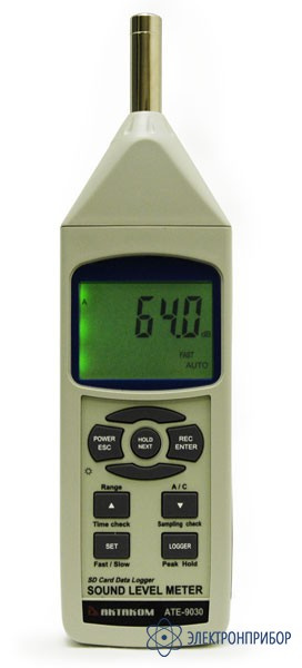 Шумомер-регистратор АТЕ-9030BT является интегрирующим измерителем уровня звука. Встроенный конденсаторный микрофон обеспечивает диапазон измерения звука в пределах от 30 до 130 дБ в полосе частот от 31,5 Гц до 8 кГц. Наличие аналогового выхода позволяет использовать шумомер АТЕ-9030BT в автоматических системах экологического контроля акустических параметров производственных и жилых помещений. В шумомере АТЕ-9030BT имеется возможность сохранения измеренных данных на SD-карту в формате Excel в режиме реального времени без использования специального программного обеспечения. Кроме того, у шумомера АТЕ-9030BT есть интерфейс RS-232, что позволяет передавать результаты измерений в компьютер. Bluetooth интерфейс обеспечивает беспроводное соединение для отображения и регистрации данных на ПК (ОС Windows ) и любом мобильном устройстве, содержащим данный интерфейс (ОС Android).