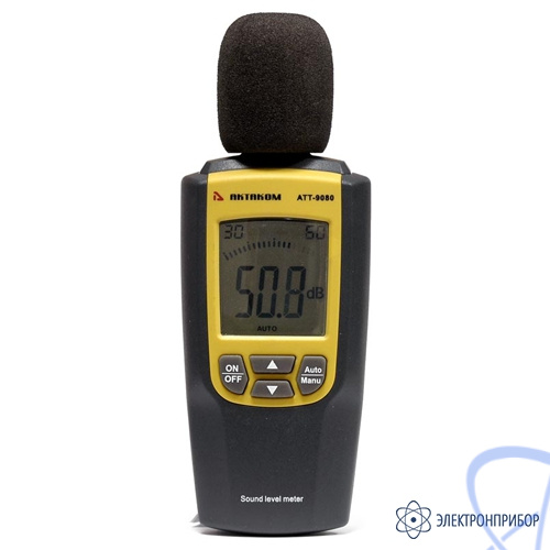 Недорогой компактный интегрирующий измеритель АТТ-9080 уровня звука со встроенный конденсаторным микрофоном обеспечивает диапазон измерения звука в пределах от 30 до 120 дБ в полосе частот от 31,5 Гц до 8 кГц.