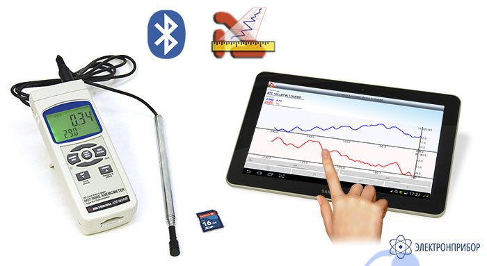 В анемометре АТЕ-1034 имеется возможность сохранения измеренных данных на карту SD в формате Excel в режиме реального времени без использования специального программного обеспечения.
