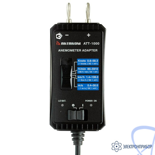 Модель АТТ-1000 не имеет дисплея, но отсутствие индикатора компенсируется наличием аналогового выхода, что позволяет использовать прибор совместно с цифровым мультиметром (имеющим предел 200 мВ) или регистратором (самописцем) для измерения и регистрации скорости воздушных потоков в жилых и производственных помещениях, вентиляционных системах.