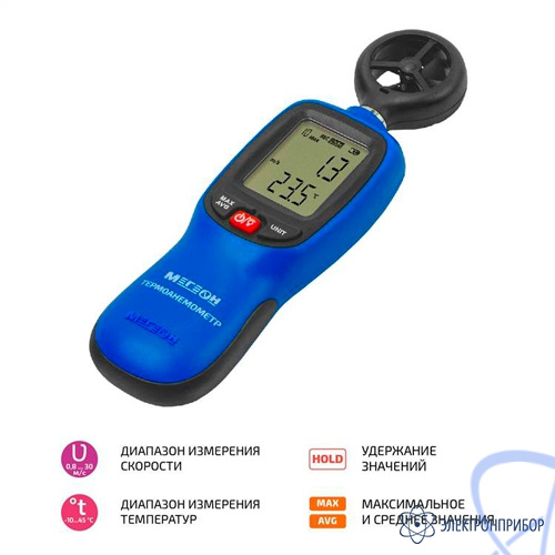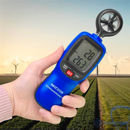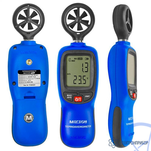 МЕГЕОН 11011 - это цифровой анемометр со встроенным термометром, предназначенный для быстрого определения параметров скорости потока воздуха с высокой точностью у вентиляций и на открытом пространстве. Внесён в ГРСИ под номером 89860-23. Модель позволяет измерять уровень набегающей воздушной массы в пределах 0,8 ... 30 метров в секунду. Имеет эргономичную форму корпуса, современный дизайн и удобное расположение органов управления, благодаря чему достигается максимальное удобство при эксплуатации, а обширный выбор единиц измерения не оставит никого равнодушным. Внутренняя память изделия получила большой объём и умещает до 999 записей. На задней стенке предусмотрено универсальное крепление для штатива.