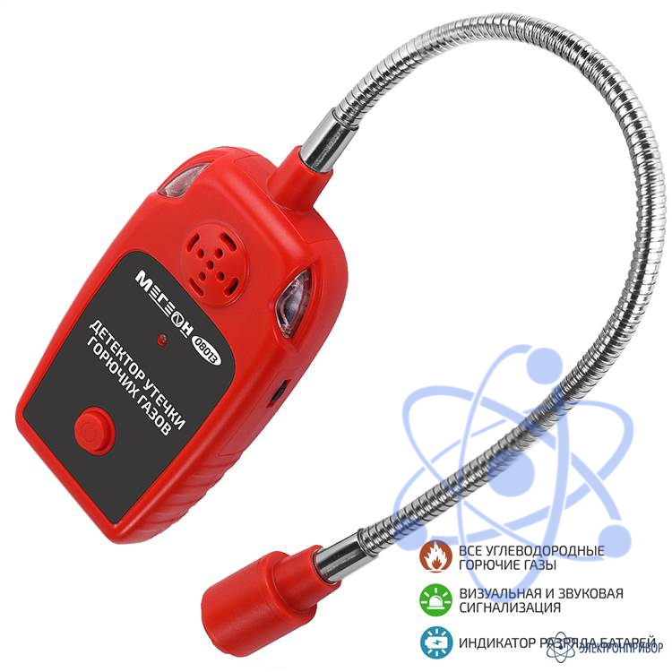 МЕГЕОН 08013 - портативный детектор, который позволяет быстро обнаружить пары горючих газов и жидкостей. Для удобства работы прибор оборудован выносным датчиком на зонде полужёсткой конструкции. Благодаря этому улучшается доступ в труднодоступные места. При обнаружении паров изделие оповестит о наличии звуковым и световым оповещением.