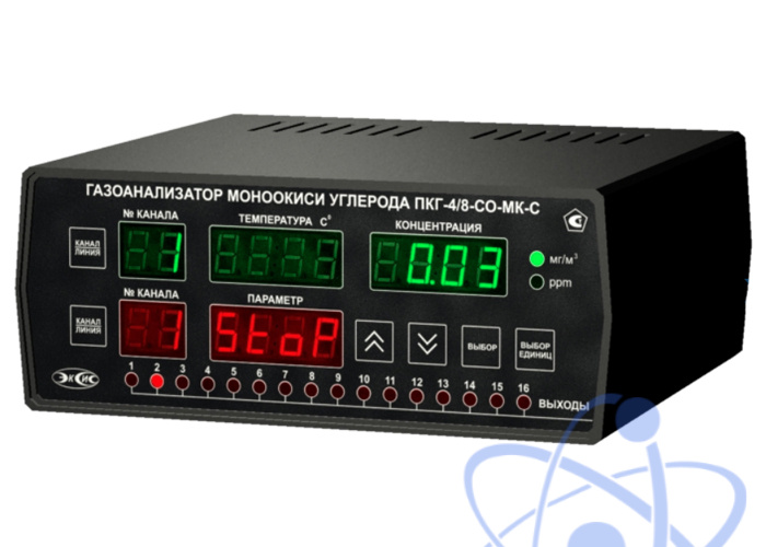 • ПКГ-4/8-C-СО-16A - стационарный восьмиканальный газоанализатор монооксида углерода (16 аналоговых выходов);
