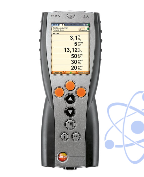 Управляющий модуль testo 350, предназначен для управления блоком анализатора и отображения данных измерений; вкл. перезаряж. аккумулятор, внутреннюю память прибора, USB-интерфейс и разъем для подключения к шине данных Testo.
