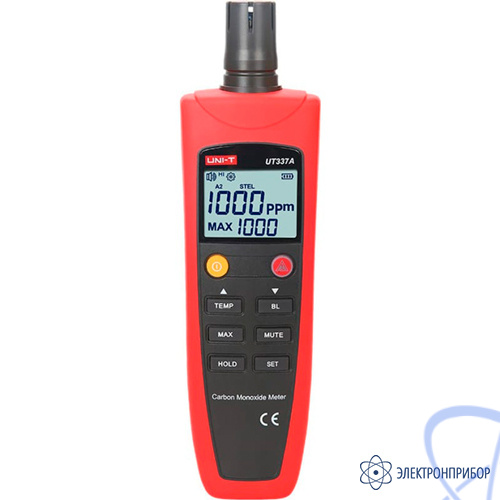 UNI-T UT337A содержит электрохимический газовый сенсор и основан на диффузном методе взятия проб. Позволяет быстро и точно измерять содержание СО газа в воздухе с точность до ±(5% или 5 ppm). Дополнительно отображают температуру и может оповещать пользователя как с помощью звукового сигнала, так и виртуально. Среди дополнительных функций есть самотестирование экрана, калибрация пользователем, индикация низкого заряда и подсветка экрана.