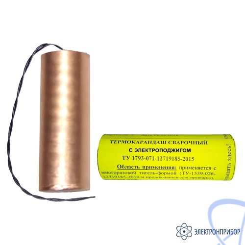 Термокарандаш сварочный с электроподжигом представляет собой изделие в форме цилиндра, имеющего медную оболочку, заполненную специально приготовленной термитной массой. Отличительной особенностью данного термитного карандаша является наличие электроподжига. То есть воспламенение происходит за счет электрического сигнала, инициируемого, например, устройством дистанционного поджига УДП-М.