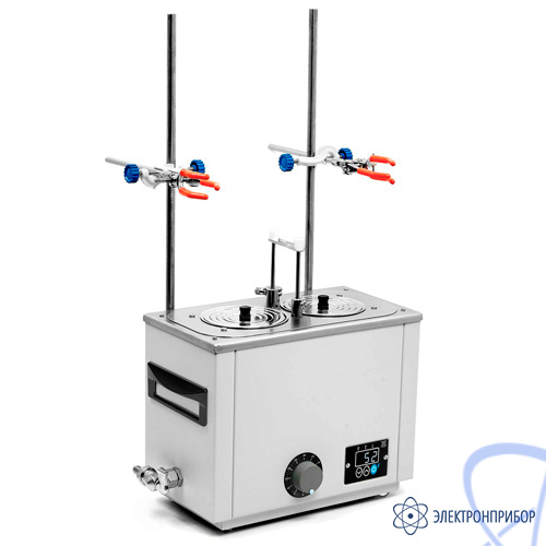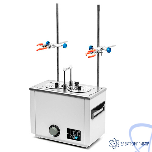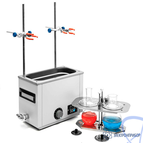 Универсальная баня ЛБ22‑Ш оснащена легко извлекаемой корзиной с подвижным дном для размещения лабораторной посуды различного размера, стальными концентрическими кольцами для ее уплотнения, штативами и лапками с зажимом.