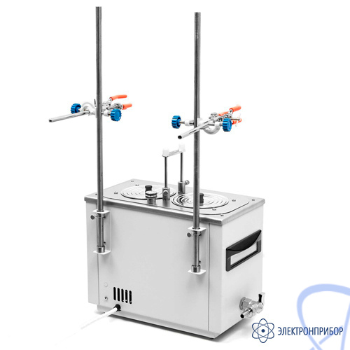 - Два рабочих места диаметром 110 мм с пятью стальными уплотнительными кольцами, штативами и лапками с зажимом.