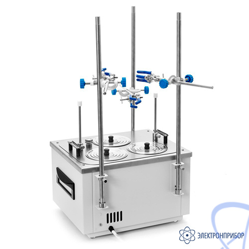 - Три рабочих места диаметром 110 мм с пятью стальными уплотнительными кольцами, штативами и лапками с зажимом.