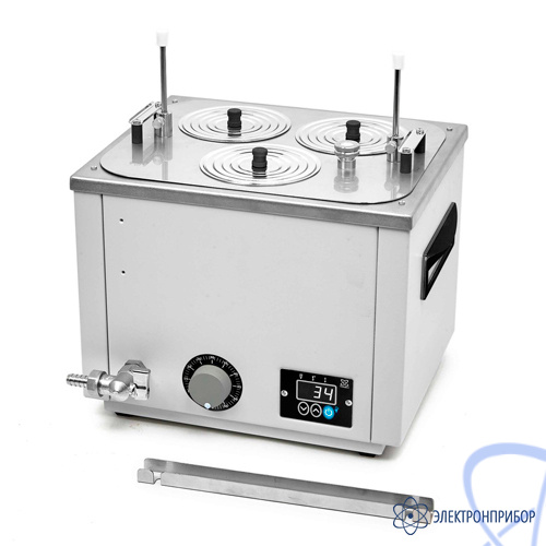 Универсальная баня ЛБ32 оснащена легко извлекаемой корзиной с подвижным дном для размещения лабораторной посуды различного размера и стальными концентрическими кольцами для ее уплотнения.