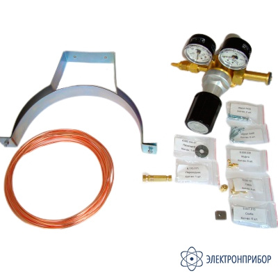 Комплект включает в себя двухступенчатый баллонный регулятор давления 5.882.003, медный трубопровод, а также комплектующие, необходимые для установки баллона и монтажа трубопровода до хроматографа. Полный перечень элементов, входящих в комплект, приводится ниже.