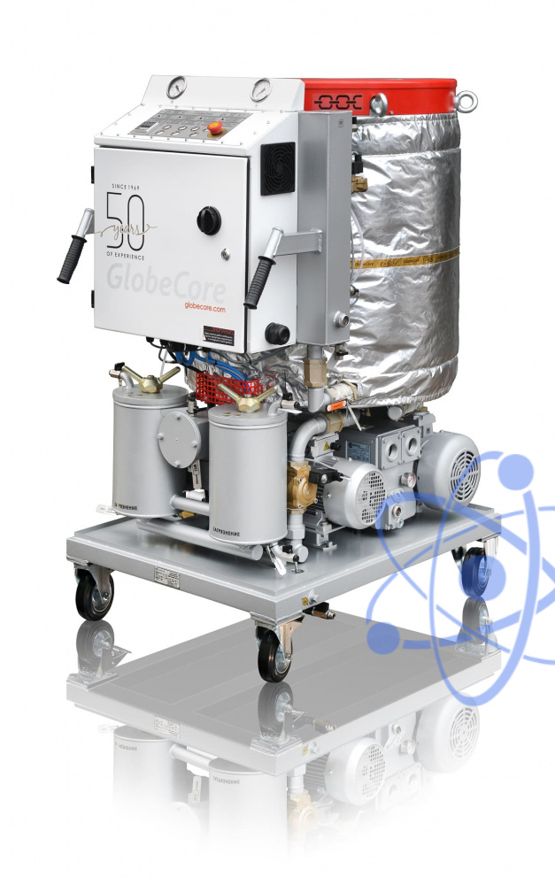 Установка может быть использована для очищения загрязненных масел от воды, свободных и растворенных газов, нагрева и осушки маслонаполненных электрических аппаратов горячим трансформаторным маслом методом термовакуумной осушки. А также для удаления механических примесей с помощью высокоэффективных фильтроэлементов. Установка применяется в монтажных, ремонтных и эксплуатационных организациях, занимающихся обработкой и очисткой масла.