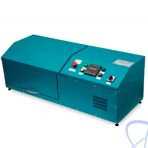 Установка представляет собой моноблок, содержащий держатель образцов, лицевую панель и крышку с закреплённой ручкой.