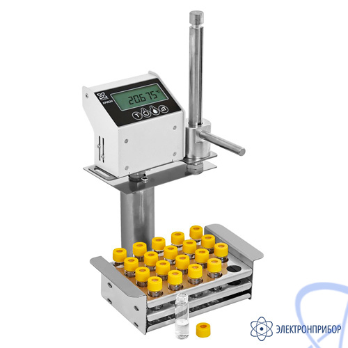 - Поставляемые в комплекте с установкой виалы — измерительные ячейки, снабженные герметичными пробками, позволяют готовить пробы по мере их поступления и хранить до момента их измерения, которое можно провести массово.