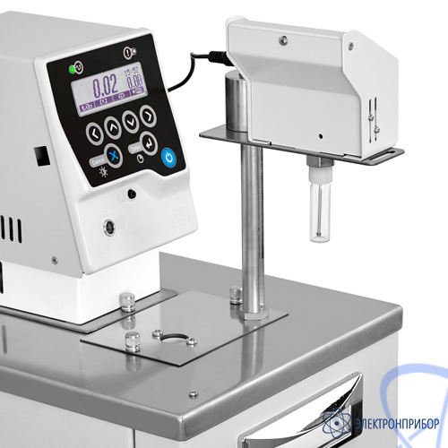 - Миниатюрный термометр, точно измеряющий температуру кристаллизации, размещен в вибрирующем металлическом стержне, выполненном из нержавеющей стали. Этот стержень служит для эффективного перемешивания исследуемого раствора.