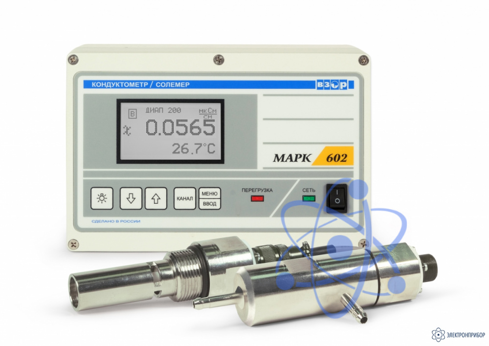 Кондуктометр МАРК-602МП предназначен для измерения электропроводимости (УЭП, УЭП25) и солесодержания водных сред в магистрали, в том числе «сверхчистых». Контроль водно-химических режимов на объектах тепловой, атомной энергетики, в том числе контроль присосов охлаждающей воды в конденсаторе турбины.