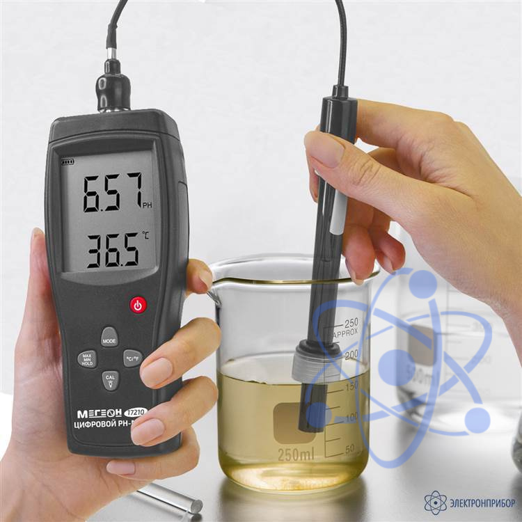 МЕГЕОН 17210 – это портативный ручной pH-метр для жидкости с функцией измерения температуры, состоит из эргономичного пластикового корпуса с экраном, на котором отображаются данные измерительного зонда (стеклянного электрода). В функционале прибора: автоматическая температурная компенсация, подсветка дисплея, удержание измеренных значений, отображение минимально и максимально измеренного значения, автоматическое отключение для экономии заряда, измерение ионоселективности и ОВП (окислительно-восстановительного потенциала). Компактные размеры в сочетании с простотой использования делают его незаменимым там, где необходимо проводить измерения рН различных жидкостей в промышленности, исследовательской и любительской областях. Прибор поставляется в прочном пластиковом кейсе с удобной ручкой, что несомненно облегчит хранение и транспортировку прибора, а мягкие ложементы внутри кейса обезопасят прибор и его датчик в случае падения кейса.