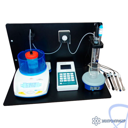 Комплект Титрион-Фуд включает оборудование для автоматического титрования потенциометрическим методом (измерение ЭДС электродных систем анализатором Эксперт-001). Представляет собой комплект Титрион-1, укомплектованный электродными системами.