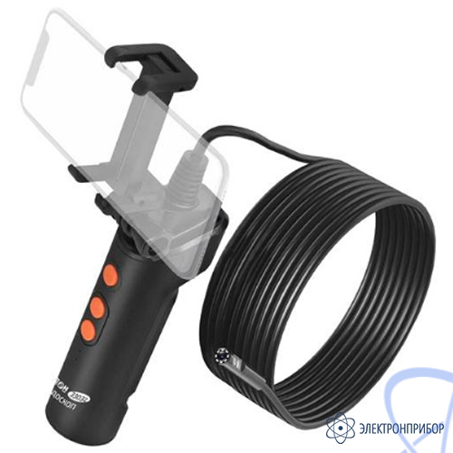 МЕГЕОН 33032 - видеоскоп- эндоскоп с подключением через Wi-Fi. Прибор удобен своей возможностью работать с большим количеством мобильных устройств. Теперь размер изображения зависит только от диагонали экрана личного смартфона или планшета. Программное обеспечение позволяет работать с операционными системами на базе Android и IOS. Необходимое приложение доступно скачивания без ограничения в Play Market и APP Store. Конструкция захвата позволяет свободно удерживать гаджет шириной до 73 мм, но это не мешает держать более габаритный аппарат в руках, так как передачу данный обеспечивает дистанционная связь. Видеонаблюдение осуществляется с двух пыле- влагозащищённых камер- фронтальной и боковой. Яркая светодиодная подсветка высокой интенсивности гарантирует прекрасную видимость в полном отсутствии освещения. Полужёсткой зонд встроен в рукоятку и не имеет разъёмного соединения.