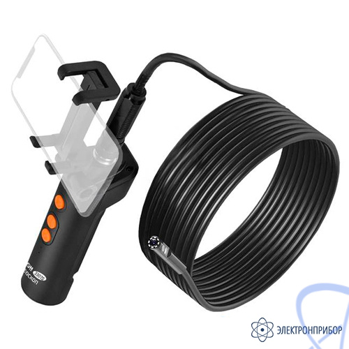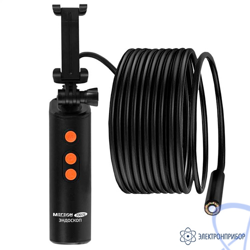 МЕГЕОН 33075 - видеоскоп- эндоскоп с подключением через Wi-Fi. Прибор удобен своей возможностью работать с большим количеством мобильных устройств. Теперь размер изображения зависит только от диагонали экрана личного смартфона или планшета. Программное обеспечение позволяет работать с операционными системами на базе Android и IOS. Необходимое приложение доступно скачивания без ограничения в Play Market и APP Store. Конструкция захвата позволяет свободно удерживать гаджет шириной до 73 мм, но это не мешает держать более габаритный аппарат в руках, так как передачу данный обеспечивает дистанционная связь. Видеонаблюдение осуществляется с двух пыле- влагозащищённых камер- фронтальной и боковой. Яркая светодиодная подсветка высокой интенсивности гарантирует прекрасную видимость в полном отсутствии освещения. Зонд жёсткого исполнения стыкуется к рукоятке при помощи разъёмного соединения.