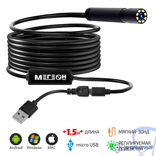 Особенности видеоскопа-эндоскопа micro USB (мягкий зонд) МЕГЕОН 33251: