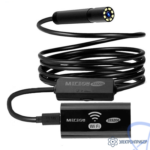МЕГЕОН 333205 - это видеоскоп с беспроводной передачей данных при помощи Wi-Fi. Прибор удобен своей возможностью работать с большим количеством мобильных средств связи. Теперь размер изображения зависит только от диагонали экрана личного смартфона или планшета. Программное обеспечение позволяет эксплуатировать совместно с операционными системами на базе Android, IOS и Windows. Необходимое приложение доступно для скачивания без ограничения в Play Market, APP Store и на сайте компании. Для работы с персональным компьютером требуется обязательное наличие функции Wi-Fi. Передатчик эндоскопа обеспечивает связь устройств на расстоянии от 5 до 30 метров. Видеонаблюдение обеспечивается пыле- влагозащищённой камерой диаметром 8 мм. Яркая светодиодная подсветка высокой интенсивности гарантирует прекрасную видимость в полном отсутствии освещения.