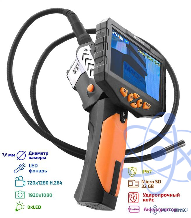 МЕГЕОН 33500-176 - новинка в модельном ряду цифровых видеоскопов, предназначенный для решения задач в быту и промышленности. Эндоскоп представляет собой устройство для исследования и осмотра скрытых от глаза полостей с возможностью сохранения видеоизображения со звуком на встроенный носитель SDHC 32Гб. Помимо этого предусмотрено получение цветных изображений с помощью фотографий.