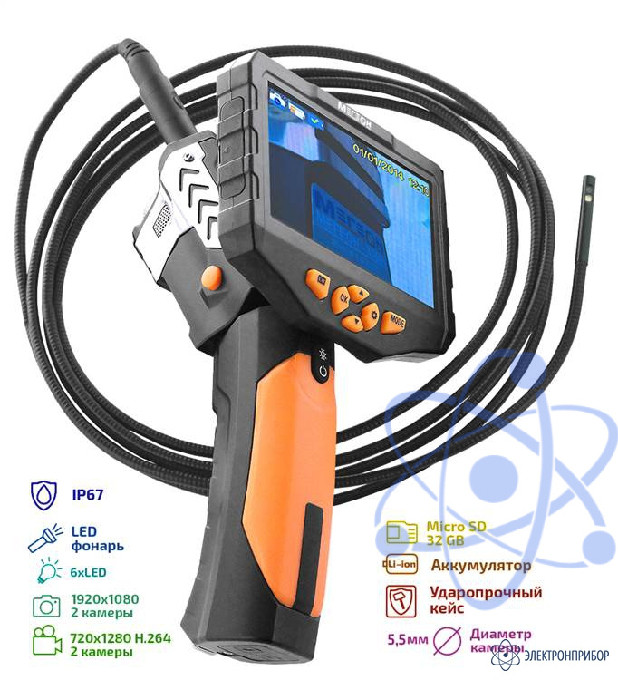 МЕГЕОН 33500- 355D - новинка в модельном ряду цифровых видеоскопов, предназначенный для решения задач в быту и промышленности. Эндоскоп представляет собой устройство для исследования и осмотра скрытых от глаза полостей с возможностью сохранения видеоизображения со звуком на встроенный носитель SDHC 32Гб.