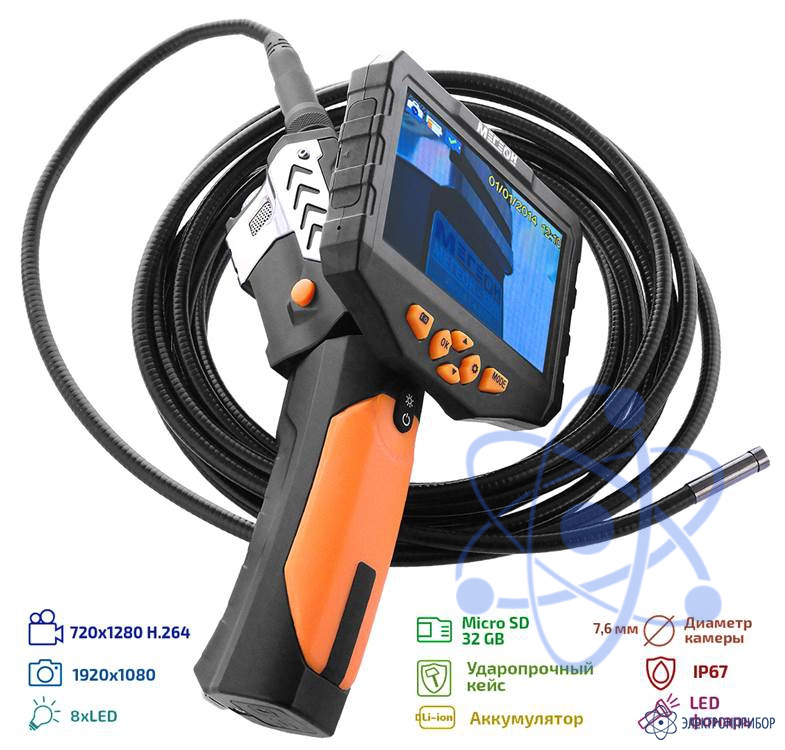 МЕГЕОН 33500-576 - новинка в модельном ряду цифровых видеоскопов, предназначенный для решения задач в быту и промышленности. Эндоскоп представляет собой устройство для исследования и осмотра скрытых от глаза полостей с возможностью сохранения видеоизображения со звуком на встроенный носитель SDHC 32Гб.