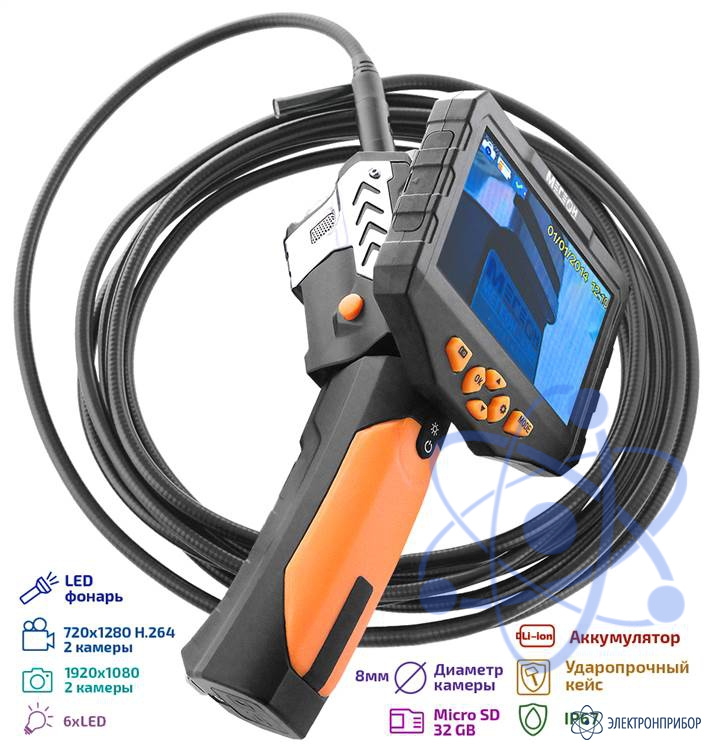 МЕГЕОН 33500-58D - новинка в модельном ряду цифровых видеоскопов, предназначенный для решения задач в быту и промышленности. Эндоскоп представляет собой устройство для исследования и осмотра скрытых от глаза полостей с возможностью сохранения видеоизображения со звуком на встроенный носитель SDHC 32Гб. Помимо этого предусмотрено получение цветных изображений с помощью фотографий.
