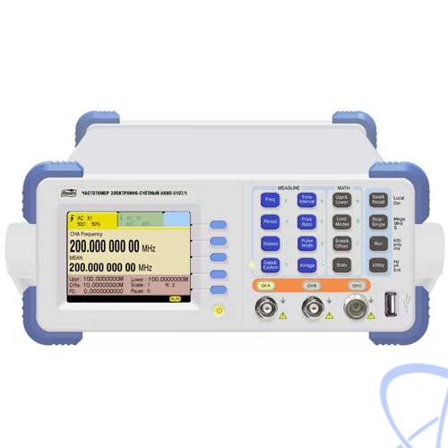 - Измерение частоты, периода, временного интервала, отношения частот, фазового сдвига между сигналами, длительности и скважности импульсов, счет импульсов;