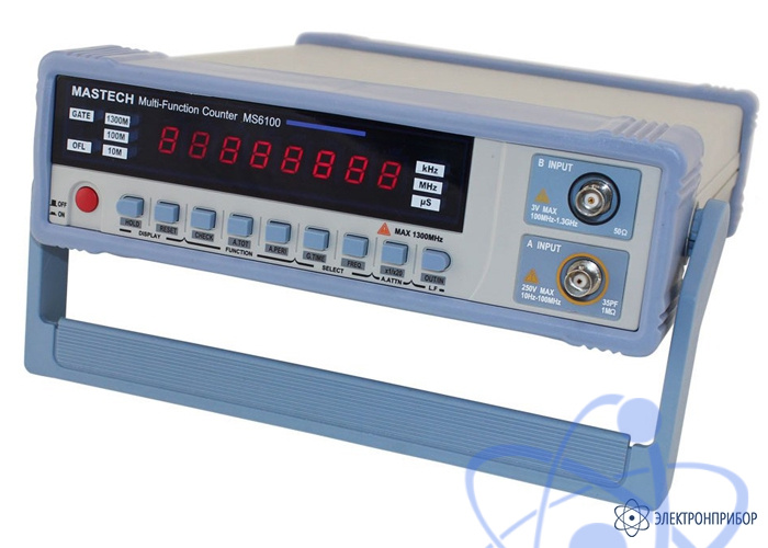Частотомер MS6100 предназначен для измерения частоты в диапазоне от 10 Гц до 1300 МГц с разрядностью 8 знаков. Это интеллектуальный многофункциональный частотомер. Частотомер MS6100 управляется 8-битным микроконтроллером с 8-разрядным диодным дисплеем высокой яркости. 4 функции измерения: частоты, периода, суммы, самопроверка включены в частотомер. Входной сигнал может быть подвержен затуханиям. Прибор был разработан в соответствии с требованиями по безопасности IEC1010 -1.