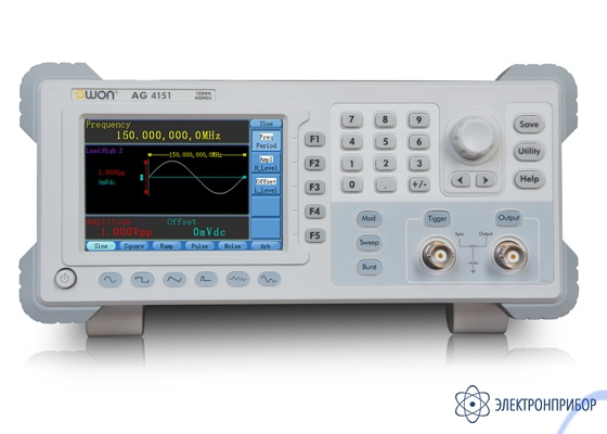 AG4151 - многофункциональный генератор, объединивший в одном приборе функциональный генератор и генератор сигналов произвольной формы. Использование технологии прямого цифрового синтеза (DDS) предоставляет возможность получения точного, стабильного выходного сигнала с низкими искажениями. Дружественный пользовательский интерфейс и удобное расположение органов управления позволяют быстро освоить работу с прибором. AG4151 имеет интерфейсы USB (в том числе обеспечивается поддержка внешнего USB-накопителя), RS232. Всё это позволяет удовлетворить разнообразные потребности пользователя.