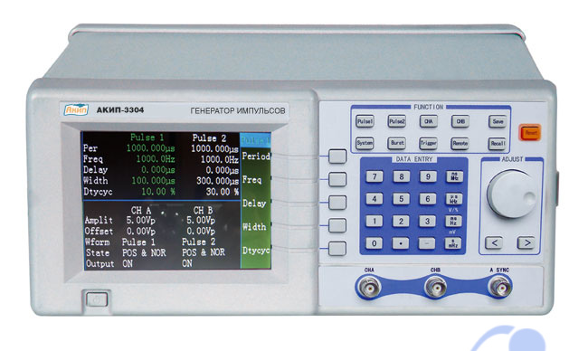 Генератор импульсов АКИП-3303: Технология прямого цифрового синтеза; Высокая точность установки временных параметров 5×10-5; Режим одиночных и парных импульсов, регулируемая задержка между основным и синхроимпульсом; Диапазон частот от 0,1 мГц до 50 МГц; Выход до 10 В пик на нагрузке 50 Ом; Регулировка смещения (± 5 В); Вход внешней опорной частоты; Индикатор ЖКИ 5,7 дюймов; Опциональные интерфейсы КОП, USB, RS-232C; Масса 3 кг.