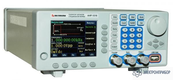 Генератор сигналов специальной формы АНР-1035 является одноканальным, обладает высокой точностью установки частоты и разрешением. АНР-1035 позволяет генерировать сигналы откорректированные пользователем из стандартных форм или полностью созданные пользователем.