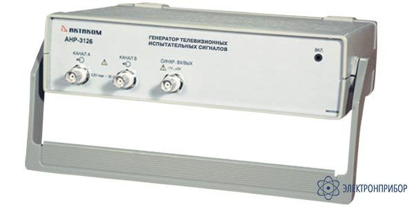 Генератор телевизионных испытательных сигналов AHP-3126 представляет собой 12-разрядный цифровой прибор, который предназначен для генерации испытательных сигналов, подаваемых на видео вход чёрно-белых и цветных телевизоров для оценки качества изображения. На аналоговом выходе (канал «А») генератор формирует телевизионные испытательные сигналы. Выбор сигнала и задание его параметров производится пользователем с помощью компьютера. На аналоговом выходе (канал «В») формируются уравнивающие импульсы, синхронизирующие импульсы строк и полей в соответствии с ГОСТ 7845-92 (ГОСТ 7845-92 распространяется на систему вещательного телевидения в I-V частотных диапазонах и устанавливает основные параметры, определяющие систему вещательного телевидения, и методы их измерений.) Дополнительно на выходе синхронизации прибор вырабатывает синхроимпульсы с частотой строк и уровнем ТТЛ для синхронизации других приборов.