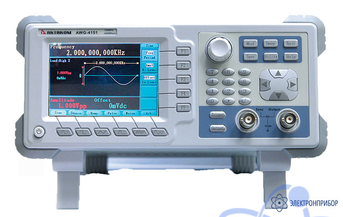 Новая модель генератора Актаком AWG-4151 имеет максимальную частоту генерации до 150 МГц (для синусоидального сигнала) при максимальном частотном разрешении 1 мкГц. Кроме синусоидального сигнала, AWG-4151 может генерировать такие стандартные сигналы, как меандр (1 мкГц - 50 МГц), пилообразный (1 мкГц - 1 МГц), импульсный (1 мкГц - 25 МГц), шумовой (полоса 50 МГц), а также пользовательские сигналы с диапазоном частот от 1 мкГц до 10 МГц: возрастание и убывание по экспоненциальному закону, Sin(x)/x и сигнал постоянного тока.