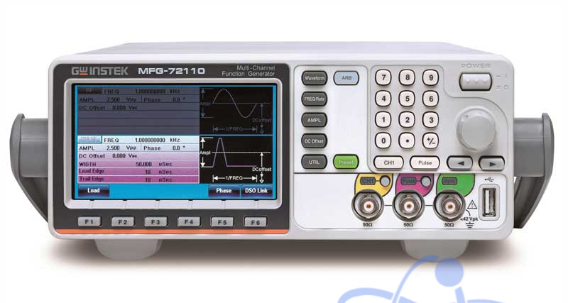 2-канальный генератор сигналов специальной и произвольной формы, генератор импульсов. Независимые выходы с полной гальванической развязкой + синх.вход/выход ТТЛ, вход внешней модуляции. Программное обеспечение AWES (ПО) для создания и редактирования сигналов произвольной формы/СПФ (библиотека включает равномерный шум, гауссовский (Gaussian), шум Релея (Rayleigh), цифровые коды NZ-код, Манчестер, RS-232, и др.). Поддержка функции DWR (Direct Waveform Reconstruction) захват сигнала на цифровом осциллографе GW Instek и его воспроизведение генератором.