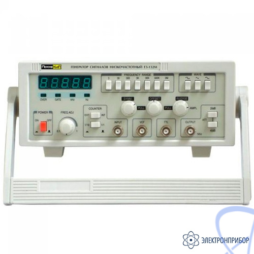 Генератор сигналов низкочастотный ПрофКиП Г3-132М предназначен для исследования, настройки и испытаний систем и приборов, используемых в радиоэлектронике, связи, автоматике, вычислительной и измерительной технике, приборостроении. Прибор обеспечивает формирование сигналов прямоугольной, треугольной, синусоидальной формы, а также импульсов TTL уровней в диапазоне частот от 0.03 Гц до 3 МГц.