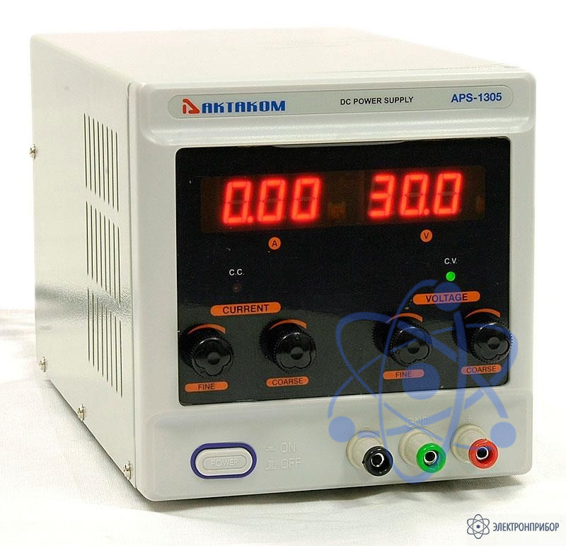 Источник питания APS-1305 предназначен для питания радиотехнических устройств стабилизированным напряжением или током при проведении работ в процессах наладки, ремонта и лабораторных исследований в условиях умеренного климата. Применяется в ремонтных и научно-исследовательских лабораториях.