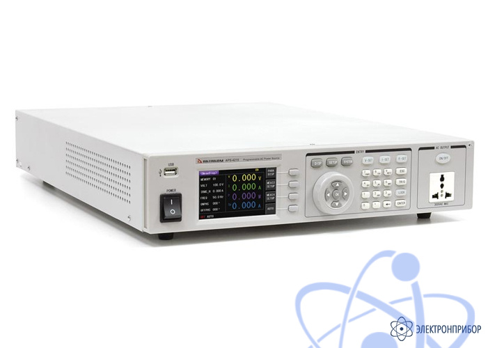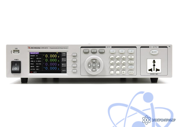 Источник APS-4215 обладает широкой функциональностью. Помимо регулировки напряжения и тока можно также устанавливать необходимые значения частоты, мощности, начальной и конечной фазы, пикового тока, крест-фактора и коэффициента мощности.