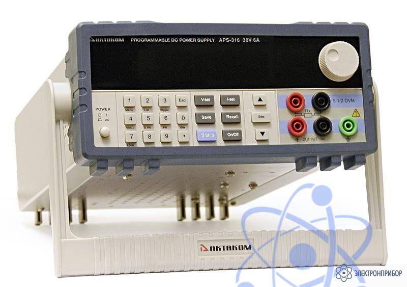 Источник питания APS-7316 предназначен для выдачи стабилизированного напряжения от 0 до 30 В и тока от 0 до 6 А. APS-7316 имеет наилучшую точность установки 0,01% по напряжению и 0,05% - по току.