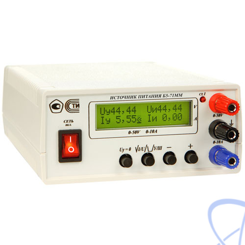 Управление и контроль за режимами работы источника питания Б5-71ММ осуществляет встроенный в базовый блок микроконтроллер. Встроенный измеритель напряжения и тока обеспечивает контроль значений воспроизводимых силы тока и напряжения.